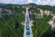 Самый длинный в мире стеклянный мост над пропастью открыт в Китае